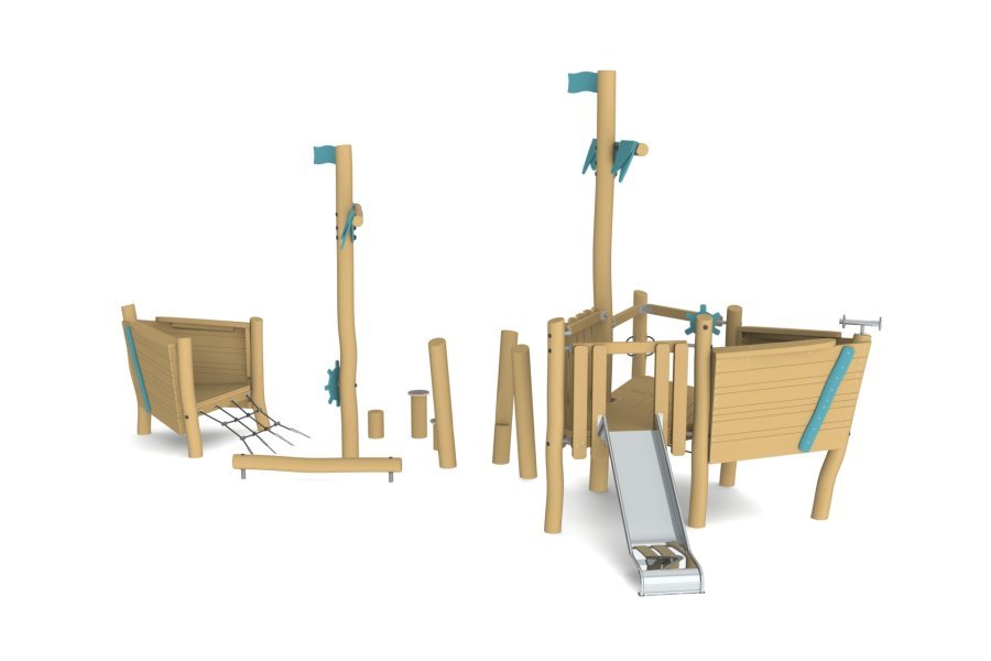 Малые и средние деревянные игровые комплексы для детей от 7 до 14 лет. Игровые комплексы характеризуются ногофункциональностью, экологичностью, долговечностью и безопасностью. Оборудование производят из материалов с высокой прочностью и стойкостью к погодным условиям: древесина из робинии, нержавеющая сталь, комбинированные канаты.