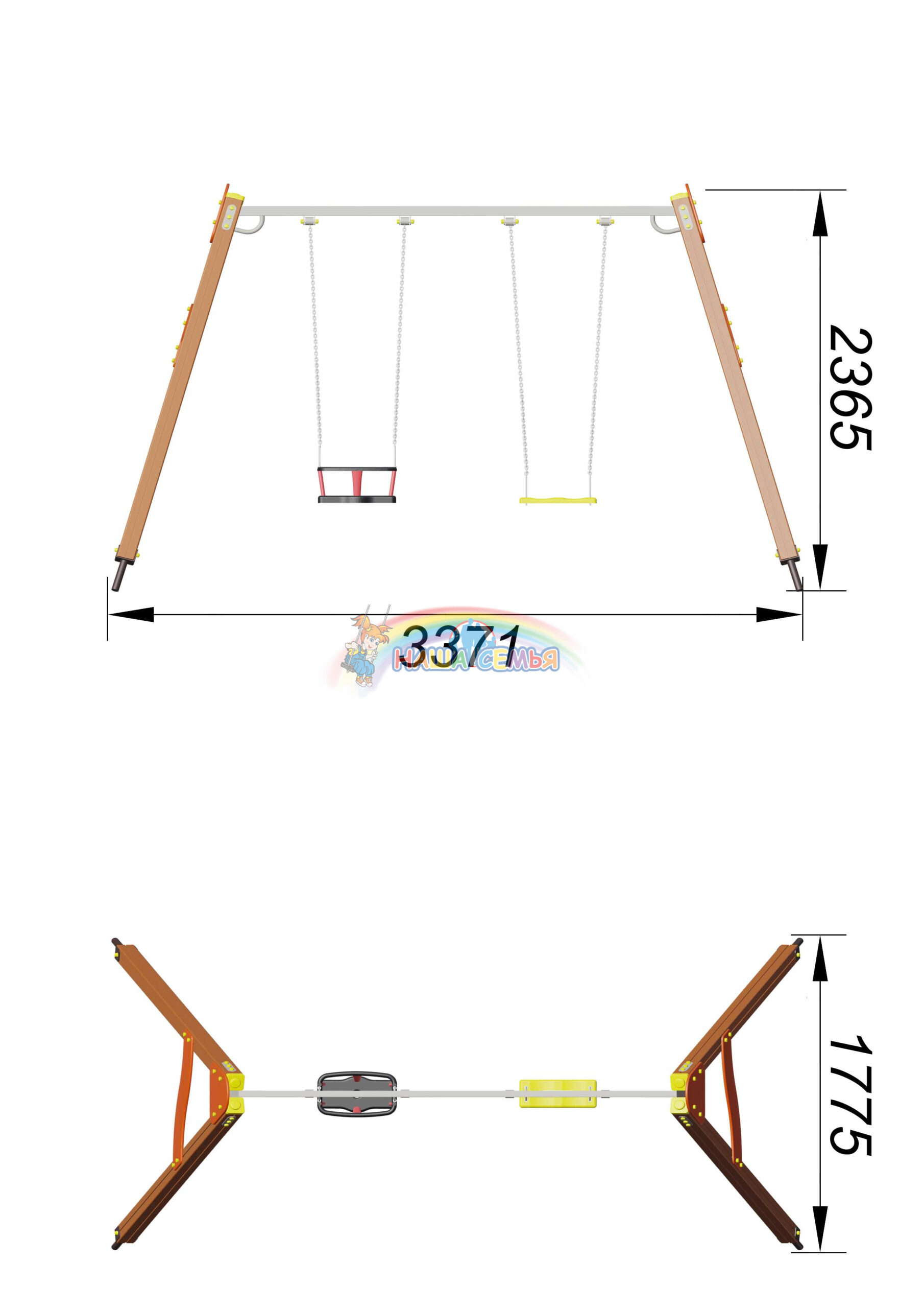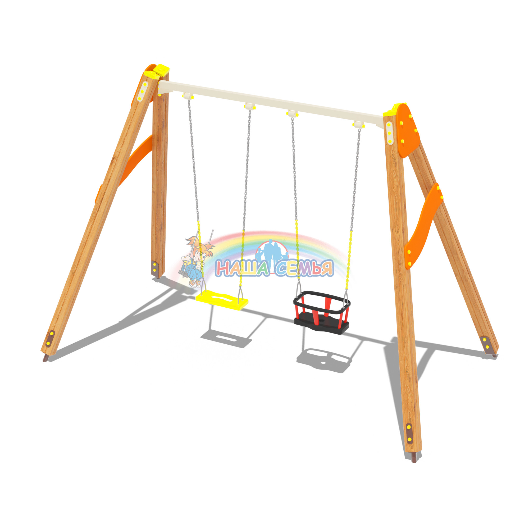 Качели детские двухместные на цепях станут отличным элементом вашей игровой площадки как на территории детского сада, так и двора. На этих качелях с удовольствием будут проводить время дети всех возрастов, от самых маленьких до подростков, а с ними и взрослые. Одно сидение предназначено для самых маленьких. Оно оснащено дополнительным ограничителем, который препятствует падению малыша с качелей. Второе сидение для детей постарше и взрослых. Очень весело кататься вдвоем.