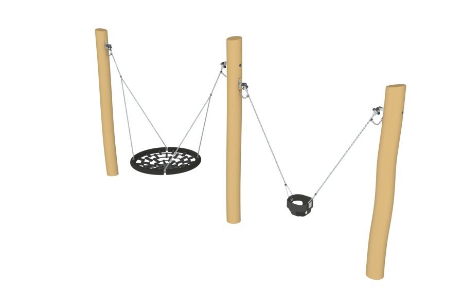 Малые и средние деревянные игровые комплексы для детей от 7 до 14 лет. Игровые комплексы характеризуются ногофункциональностью, экологичностью, долговечностью и безопасностью. Оборудование производят из материалов с высокой прочностью и стойкостью к погодным условиям: древесина из робинии, нержавеющая сталь, комбинированные канаты.