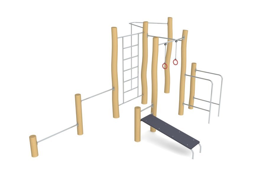 В данной категории представлено оборудование для занятия активным спортом (опорные стойки из древесины). Промежутки и стыки между элементами оборудования разработаны так, чтобы не допустить застревания конечностей, туловища и головы ребёнка, при этом конструкция не даст ему перевернуться или выпасть. Проработана возможность доступа взрослого при обстоятельствах, требующих посторонней помощи ребёнку.