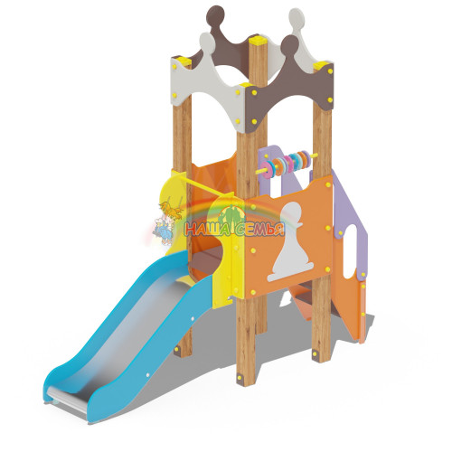 Комплекс детский Шахматы представляет собой яркую горку с декоративными элементами в виде короны, дополненную цветными колечками-счетами. Предназначен для самых маленьких детей. Яркий дизайн этого комплекса порадует малышей и их родителей и украсит собой любую детскую игровую площадку. Он станет любимым аттракционом у самых маленьких детишек.