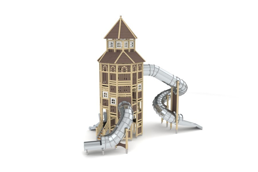 This category features small and medium-sized wooden play structures for children aged 7 to 14. They are made of pine wood with a minimal amount of plywood. The equipment is constructed from highly durable and weather-resistant materials: all wooden and metal components are coated with a protective coating.