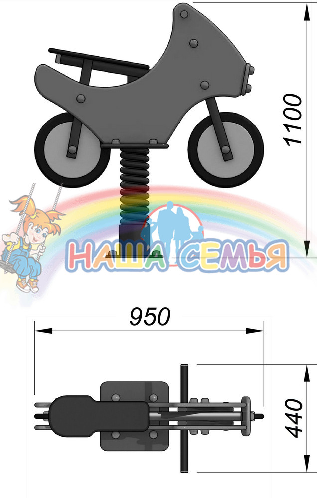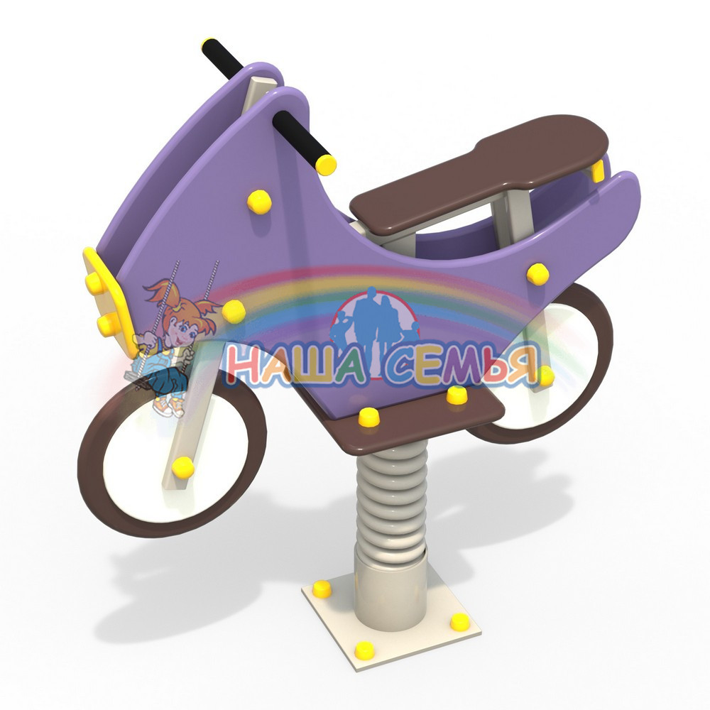 Представляем вам Качалку Мотоцикл — идеальное дополнение для детских площадок! Эта увлекательная конструкция выполнена в форме мотоцикла и оснащена пружиной, позволяющей детям качаться весело и безопасно.