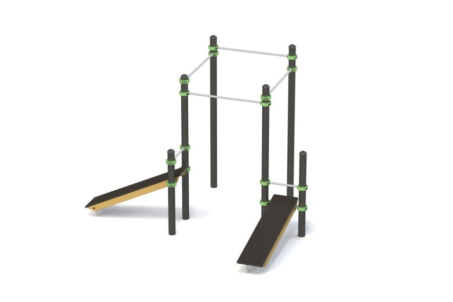 В данной категории представлено оборудование для занятия активным спортом. Промежутки и стыки между элементами оборудования разработаны так, чтобы не допустить застревания конечностей, туловища и головы ребёнка, при этом конструкция не даст ему перевернуться или выпасть. Проработана возможность доступа взрослого при обстоятельствах, требующих посторонней помощи ребёнку.