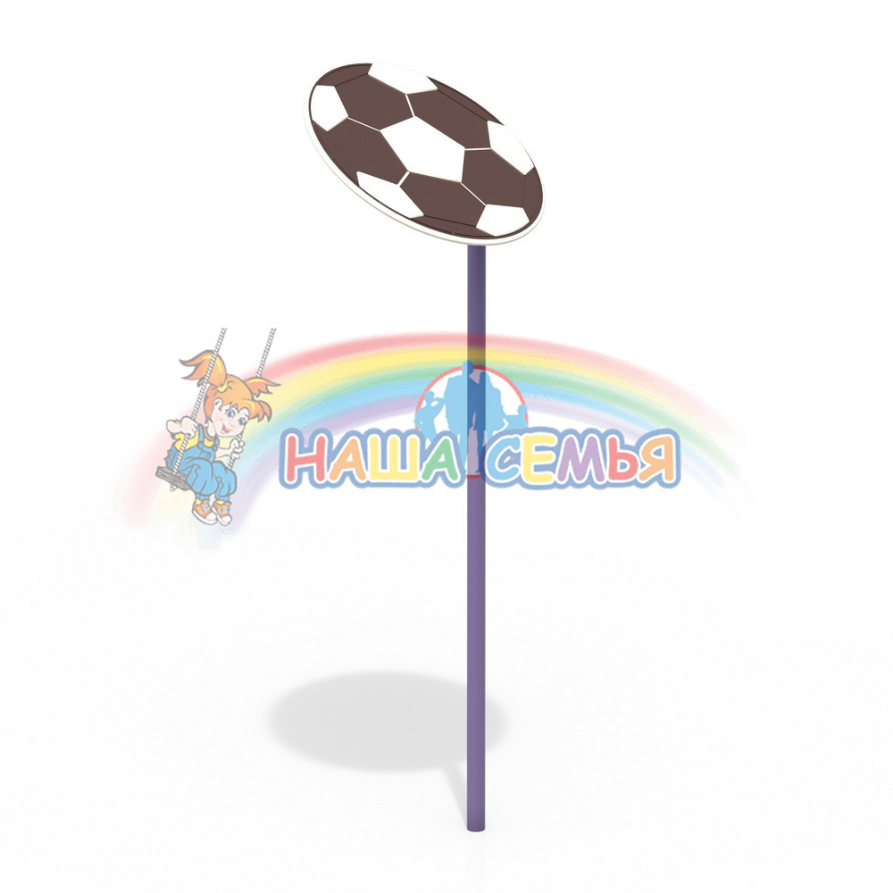Зонтик Мяч устанавливается на детской игровой площадке в местах, где нужно притенить играющих малышей. Зонтик оформлен в виде футбольного мяча. Основание металлическое окрашено порошковой краской в фиолетовый цвет.