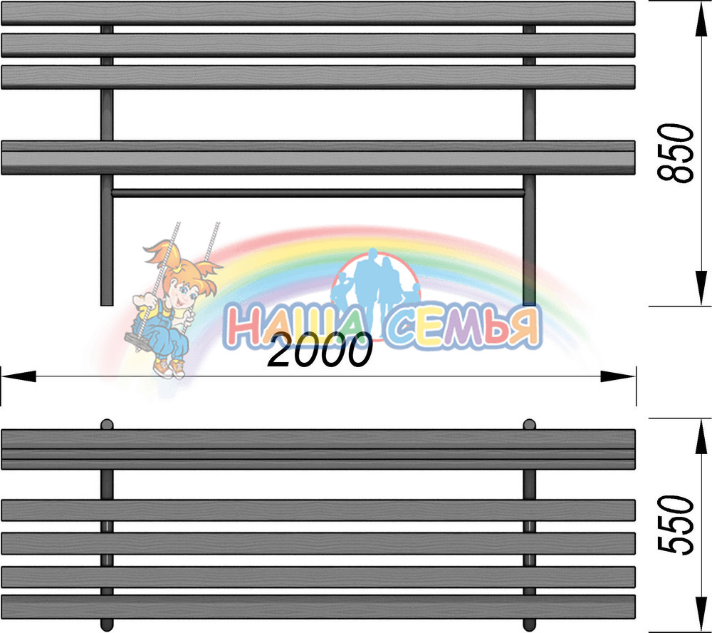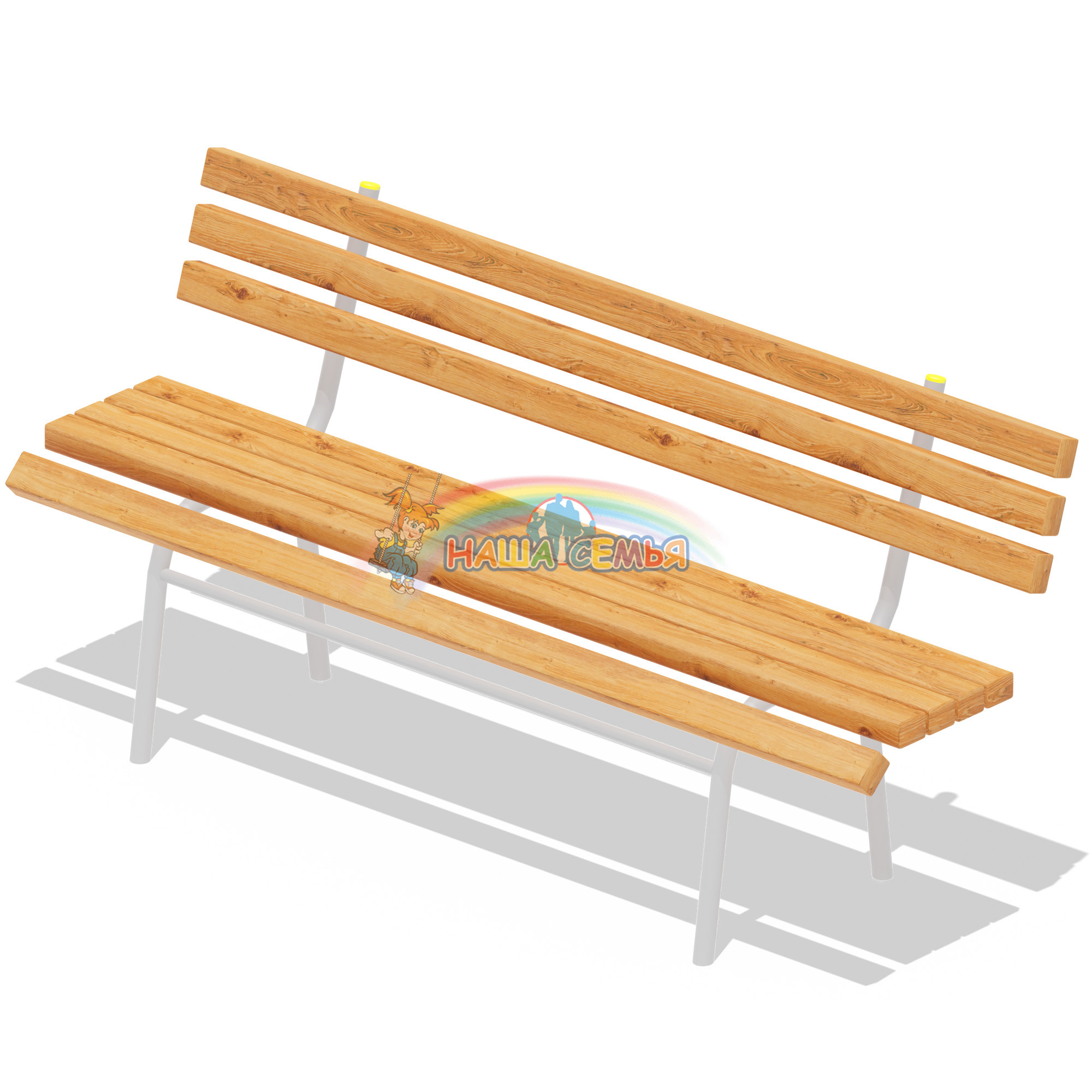 Лавочка со спинкой изготовлена из деревянного бруса, закрепленного на каркасе из металла. Каркас окрашен порошковой краской, имеет коричневый цвет. Предназначена для отдыха в парковых зонах и других местах.