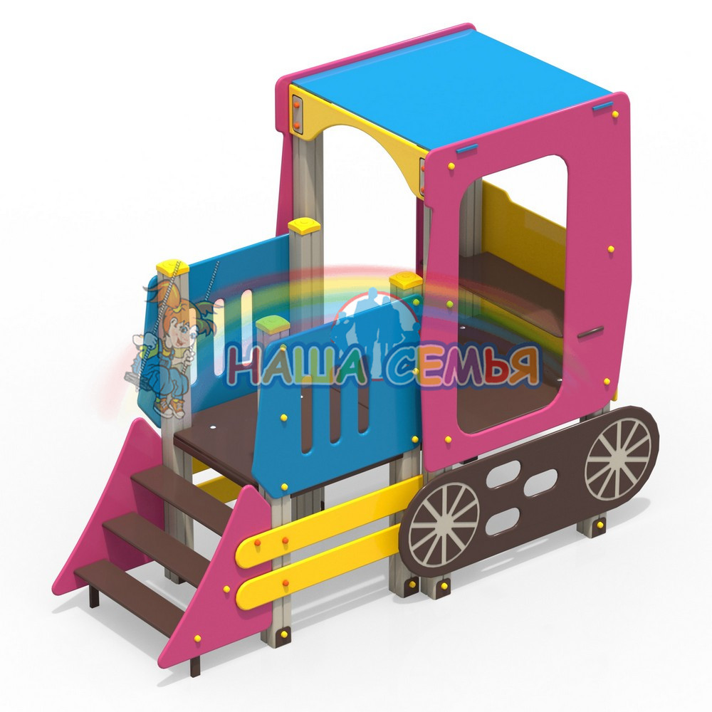 Детское игровое оборудование Трактор для детей от 3 до 6 лет. Предназначен для игр на свежем воздухе. Может устанавливаться как на детских площадках многоквартирных домов, так и на частных небольших приусадебных участках.