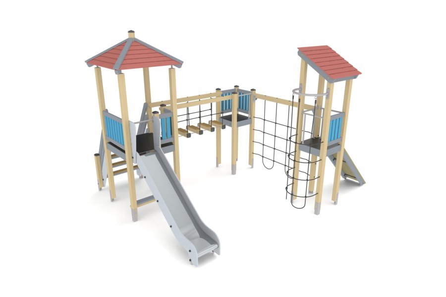 В данной категории представлены малые и средние деревянные игровые комплексы для детей от 7 до 14 лет. Изготавливается из древесины сосны, с использованием минимального количества фанерных элементов. Оборудование производят из материалов с высокой прочностью и стойкостью к погодным условиям: все деревянные и металлические элементы имеют защитное покрытие.