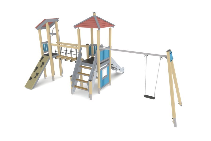 В данной категории представлены малые и средние деревянные игровые комплексы для детей от 7 до 14 лет. Изготавливается из древесины сосны, с использованием минимального количества фанерных элементов. Оборудование производят из материалов с высокой прочностью и стойкостью к погодным условиям: все деревянные и металлические элементы имеют защитное покрытие.