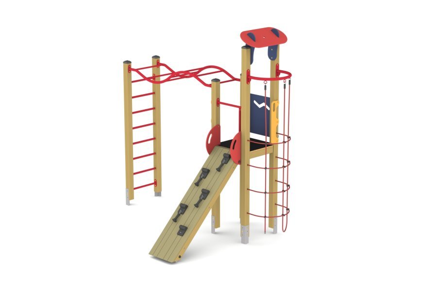 В данной категории представлены комплексы и оборудование детских спортивных площадок. Промежутки и стыки между элементами оборудования разработаны так, чтобы не допустить застревания конечностей, туловища и головы ребёнка, при этом конструкция не даст ему перевернуться или выпасть. Проработана возможность доступа взрослого при обстоятельствах, требующих посторонней помощи ребёнку.