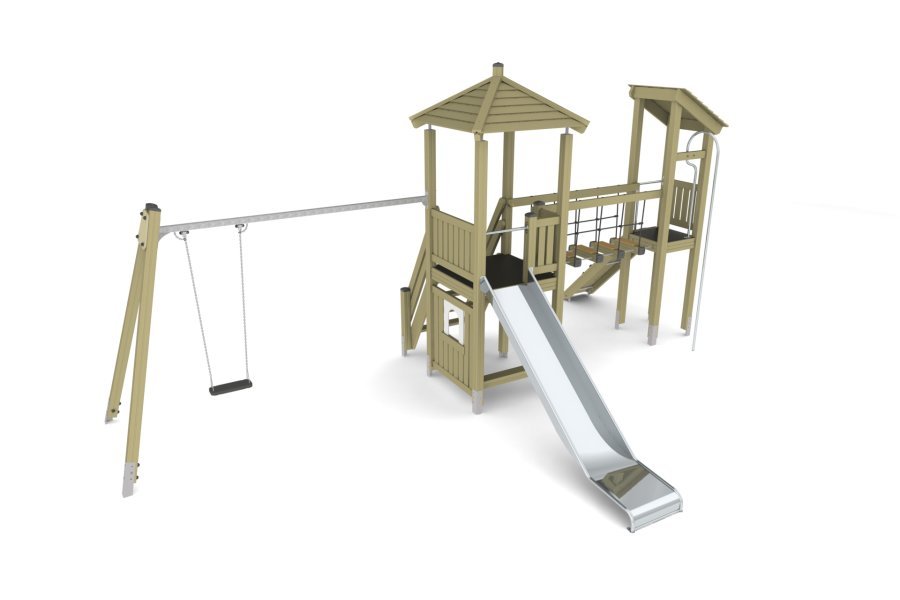 В данной категории представлены малые и средние деревянные игровые комплексы для детей от 7 до 14 лет. Городки, в которых идеально сочетается фактура древесины сосны и нержавеющая сталь. Оборудование производят из материалов с высокой прочностью и стойкостью к погодным условиям: нержавеющая сталь, все деревянные элементы имеют защитное покрытие.