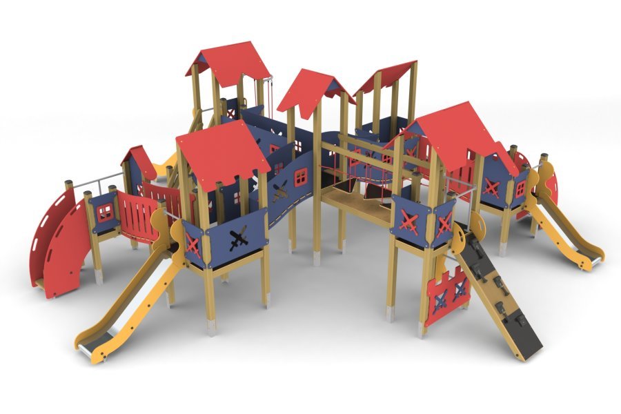 В данной категории представлены большие игровые комплексы для детей от 7 до 14 лет. Промежутки и стыки между элементами оборудования разработаны так, чтобы не допустить застревания конечностей, туловища и головы ребёнка, при этом конструкция не даст ему перевернуться или выпасть. Проработана возможность доступа взрослого при обстоятельствах, требующих посторонней помощи ребёнку.