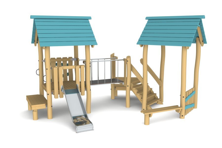 Малые и средние деревянные игровые комплексы для детей от 7 до 14 лет. Игровые комплексы характеризуются ногофункциональностью, экологичностью, долговечностью и безопасностью. Оборудование производят из материалов с высокой прочностью и стойкостью к погодным условиям: древесина из робинии, нержавеющая сталь, комбинированные канаты.