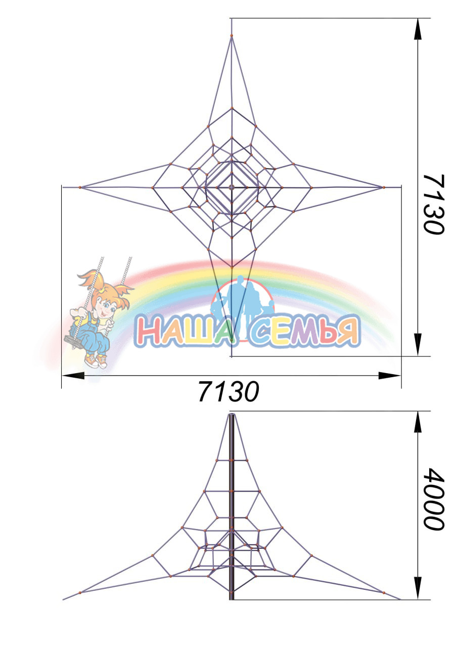 Пирамида канатная Тип 2 – отличный способ добавить интересные элементы для лазания и активной игры на детской площадке, способствуя физическому развитию и веселому времяпрепровождению.