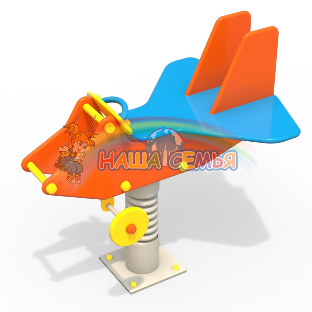Качалка на пружине Самолет — оригинальная качалка в виде симпатичного самолетика, украсит любую игровую площадку в детских садах, дворах и парках. Малыши с удовольствием будут кататься-летать на качалке Самолете. Эта качалка подарит вашим детям радость и хорошее настроение.