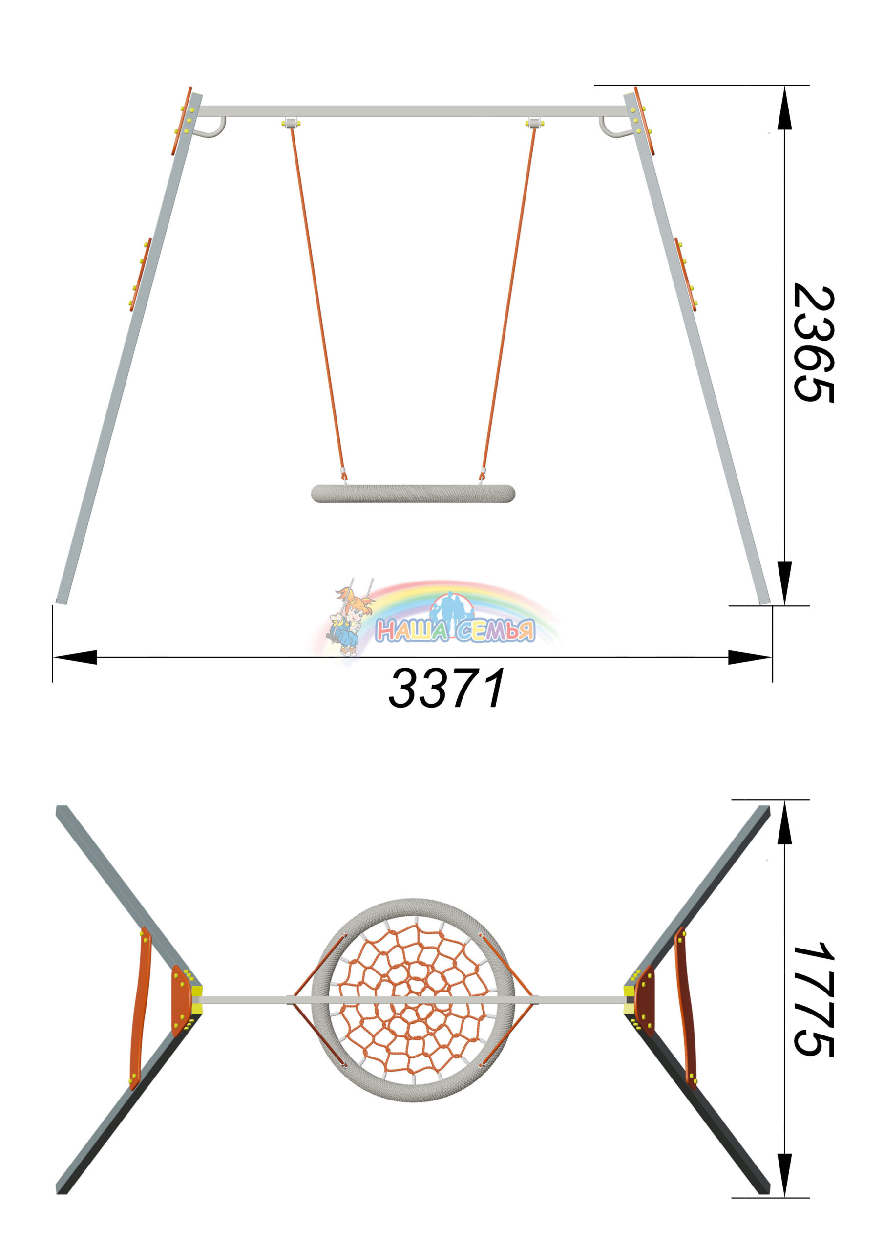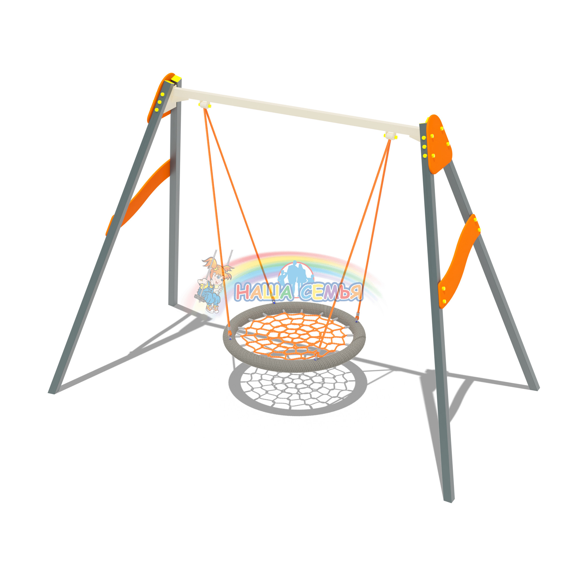 Качели Гнездо большого размера состоят из обруча с мягким плетением, обруч держится на четырех канатах. Такие качели прекрасно впишутся в любую игровую зону. Плетеное сидение качелей Гнездо большого размера, поэтому на нем, при желании, смогут кататься сразу несколько детей.