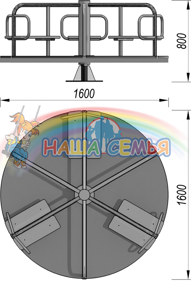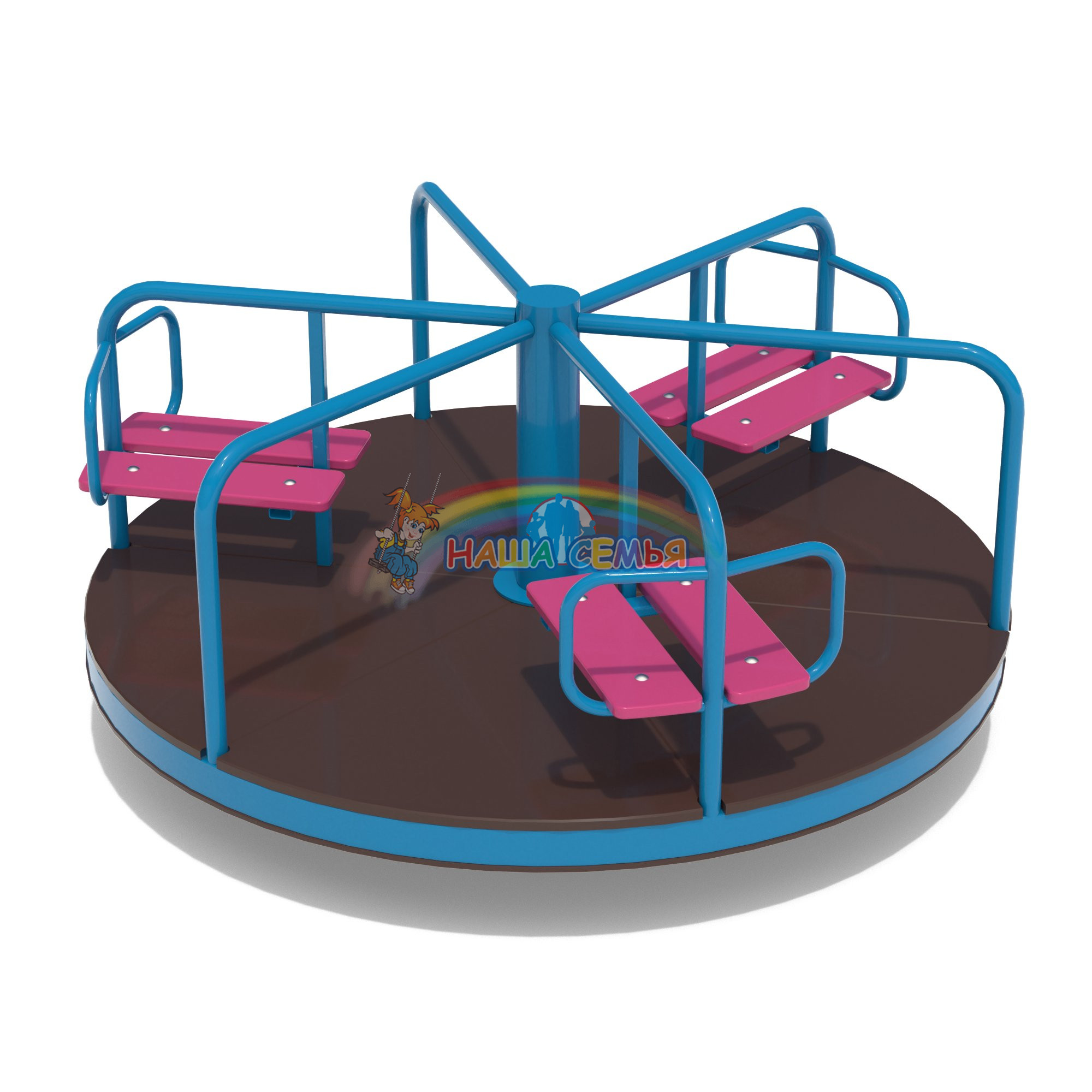 Уличная карусель с рулем отлично подойдет для вашей игровой площадки. На ней с удовольствием будут проводить время дети всех возрастов. На карусели установлен в центре руль, держась за который можно раскручивать карусель сидя.