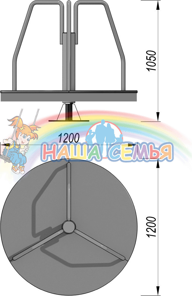 Уличная карусель маленькая стоя отлично подойдет для вашей игровой площадки. На ней могут кататься дети всех возрастов. На карусели установлены специальные поручни, держась за которые можно кататься стоя.