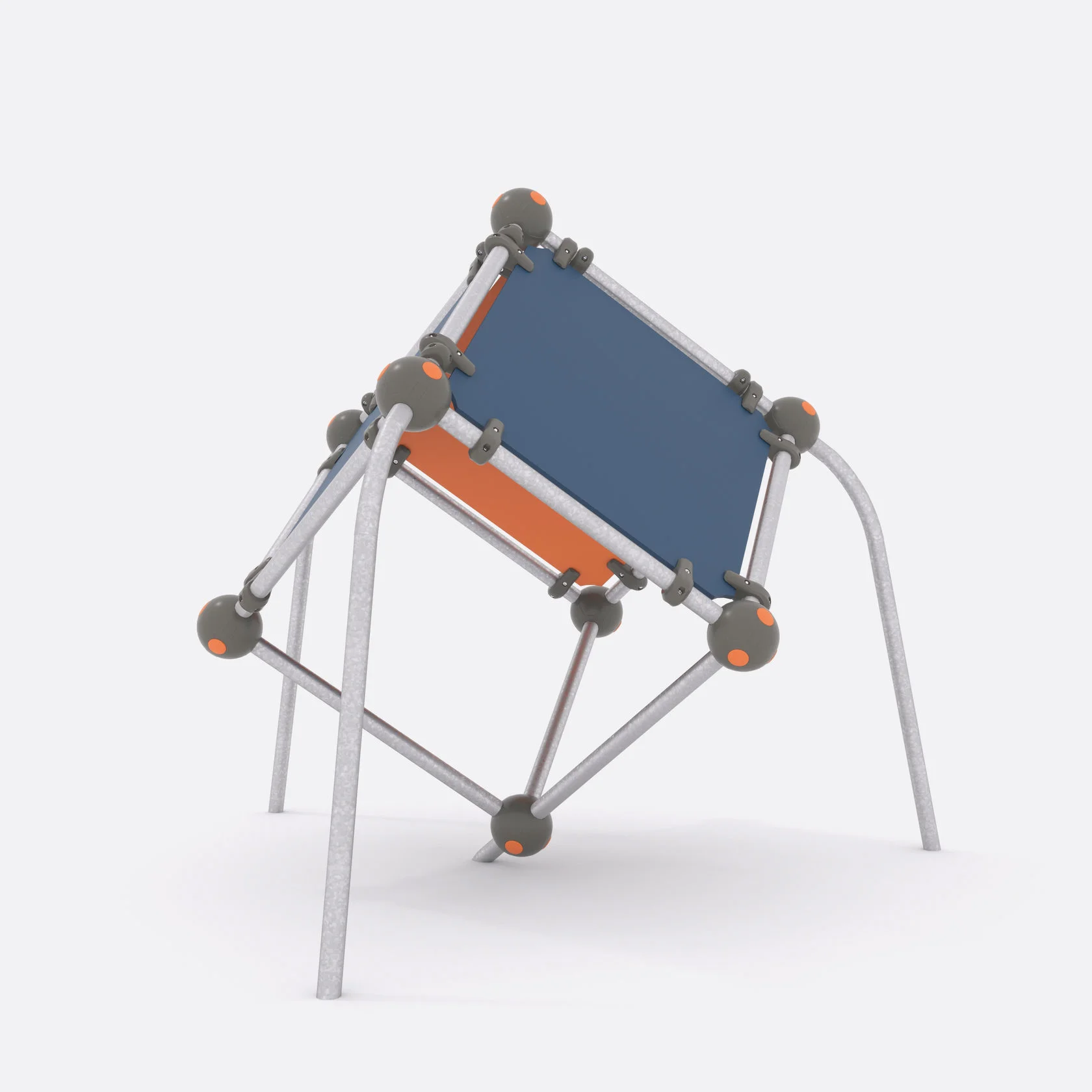 Конструкция изготовлена из следующих материалов: трубы из нержавеющей (оцинкованной) шлифованной стали марки AISI 304 диаметром 57х3 мм; крепления для листового HDPE-пластика к трубе круглого сечения диаметром 57 мм и сферические соединители для труб диаметром 57 мм – из стеклонаполненного полиамида. Боковые панели комплекса сделаны из HDPE-пластика толщиной 15 мм.