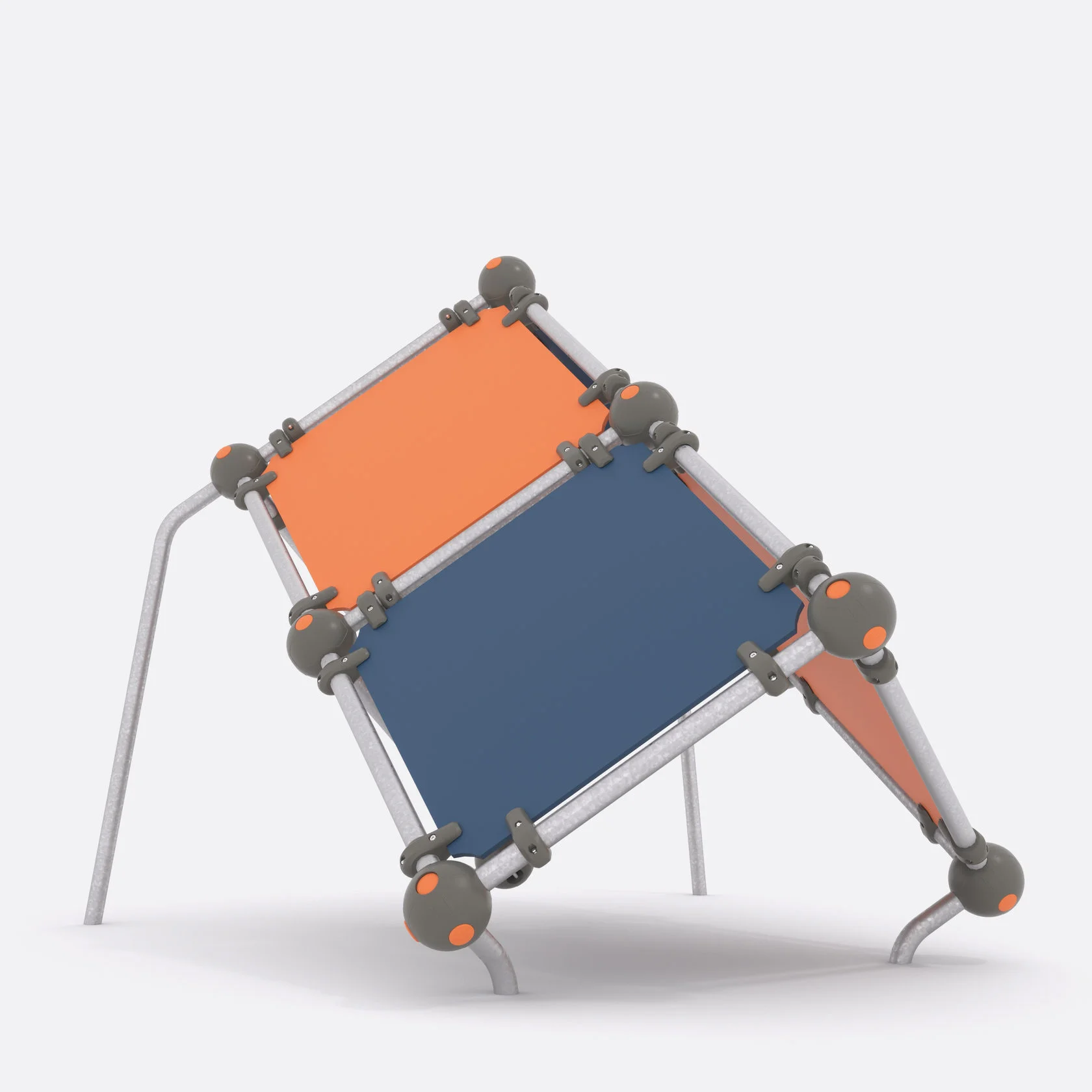 Трубы комплекса изготовлены из нержавеющей (оцинкованной) шлифованной стали марки AISI 304 диаметром 57х3 мм, крепления для листового HDPE-пластика к трубе круглого сечения диаметром 57 мм и сферические соединители для труб диаметром 57 мм – из стеклонаполненного полиамида. Боковые панели комплекса сделаны из HDPE-пластика толщиной 15 мм.