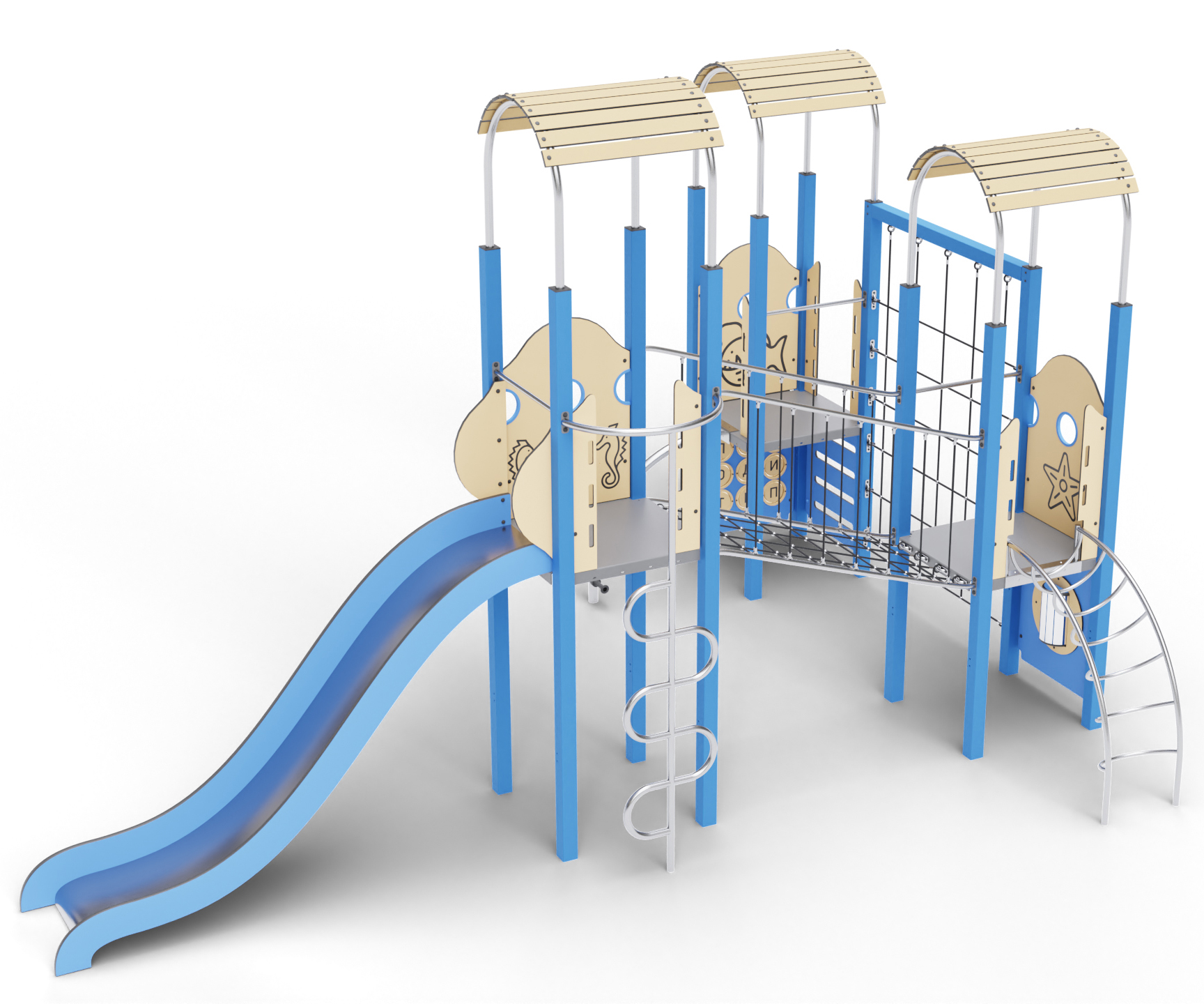 Отправьтесь в захватывающее морское приключение с нашим детским игровым комплексом  “МОРЕ”! Это большой и разнообразный игровой комплекс включает в себя множество захватывающих элементов, таких как горка, лестница, перила, башни, сетка и наклонная лестница. Эти игровые возможности позволят детям раскрыть свой потенциал, развивать координацию и радостно проводить время на площадке.