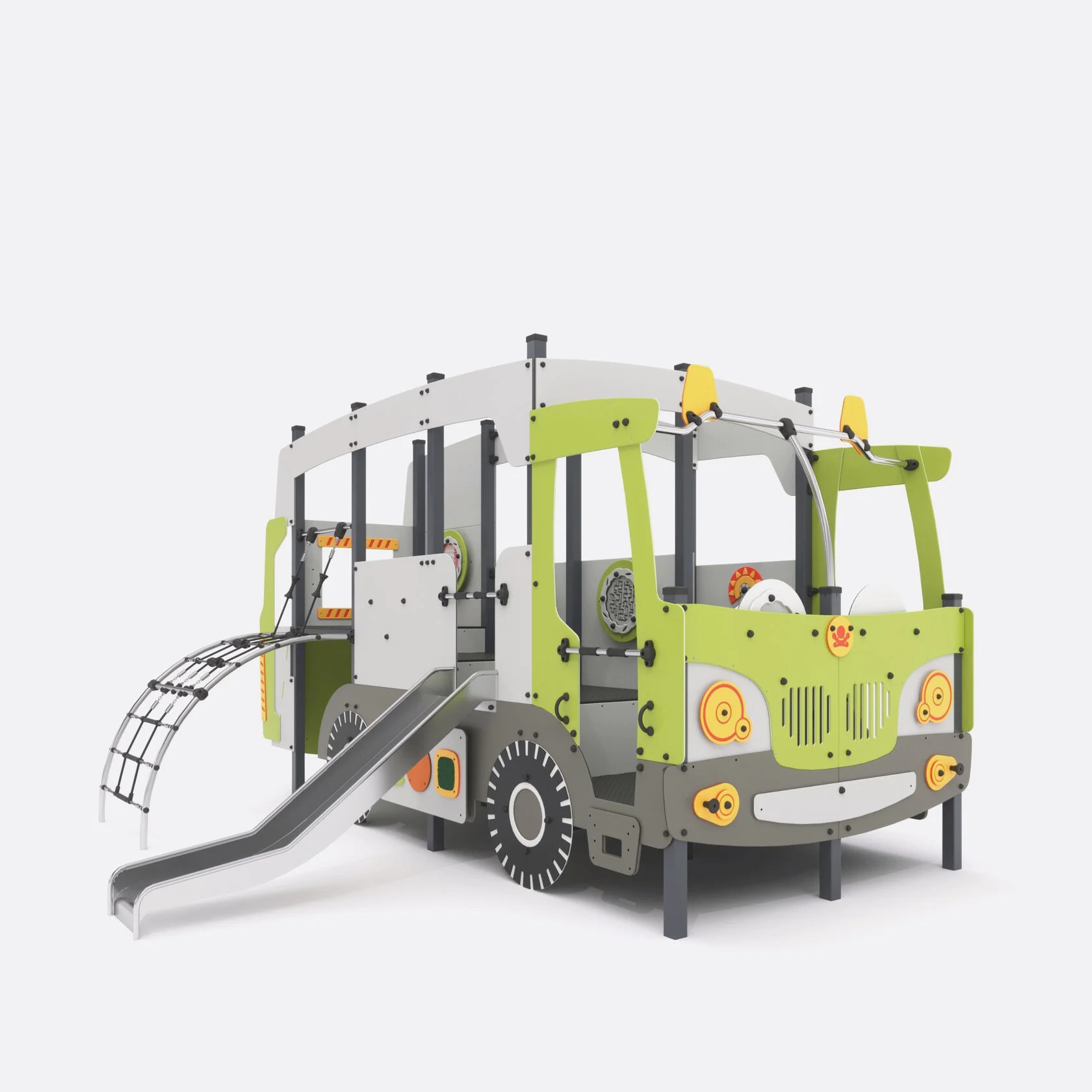 Представляет собой игровой городок для самых маленьких и активных. Он состоит из двух пространств, соединенных канатным переходом со ступенями и крышами, которые всегда укроют от дождя или палящего солнца. Также, в конструкции есть металлическая горка, телескоп, интерактивные игровые модули и малая скалодромная панель с зацепами.