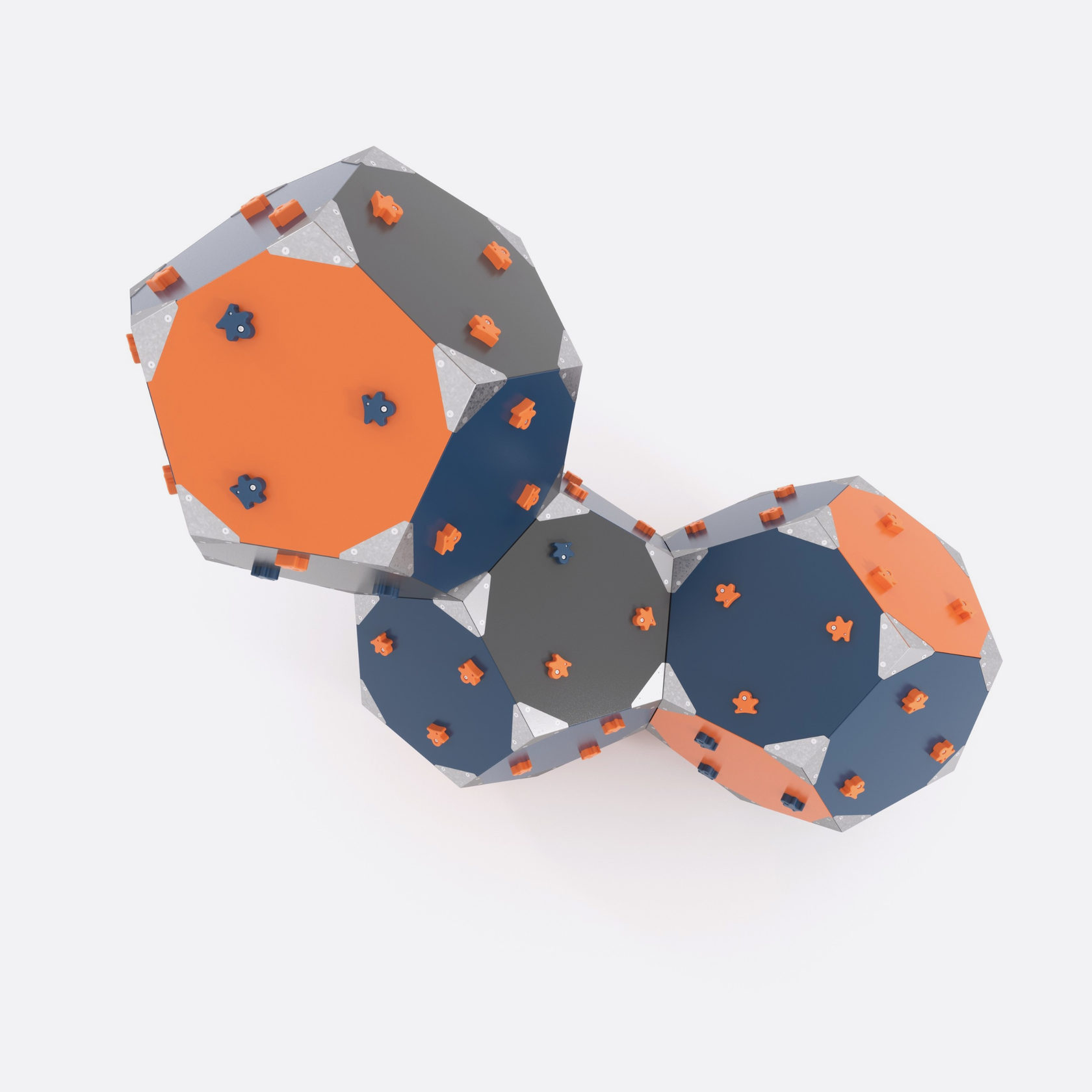 Детский игровой комплекс — «Додекаэдр х3», выполнен из панелей HDPE пластика толщиной 19 мм, скрепленных между собой стальными, оцинкованными уголками, толщиной 3 мм. На панелях расположены скалодромные зацепы из композитного материала (искусственный камень). Опорные стойки выполнены из оцинкованной трубы Ø 57 мм с толщиной стенки 3 мм.