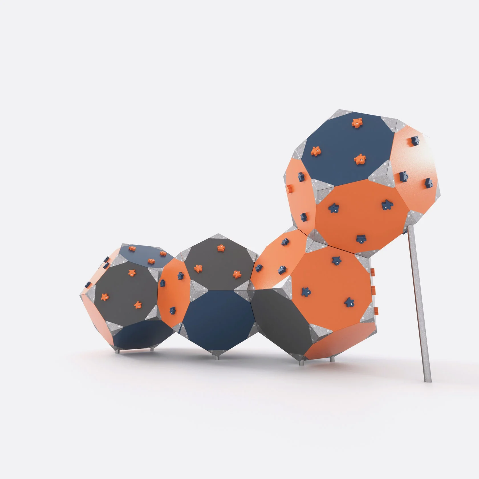 Детский игровой комплекс — «Додекаэдр х4», выполнен из панелей HDPE пластика толщиной 19 мм, скрепленных между собой стальными, оцинкованными уголками, толщиной 3 мм. На панелях расположены скалодромные зацепы из композитного материала (искусственный камень). Опорные стойки выполнены из оцинкованной трубы Ø 57 мм с толщиной стенки 3 мм.