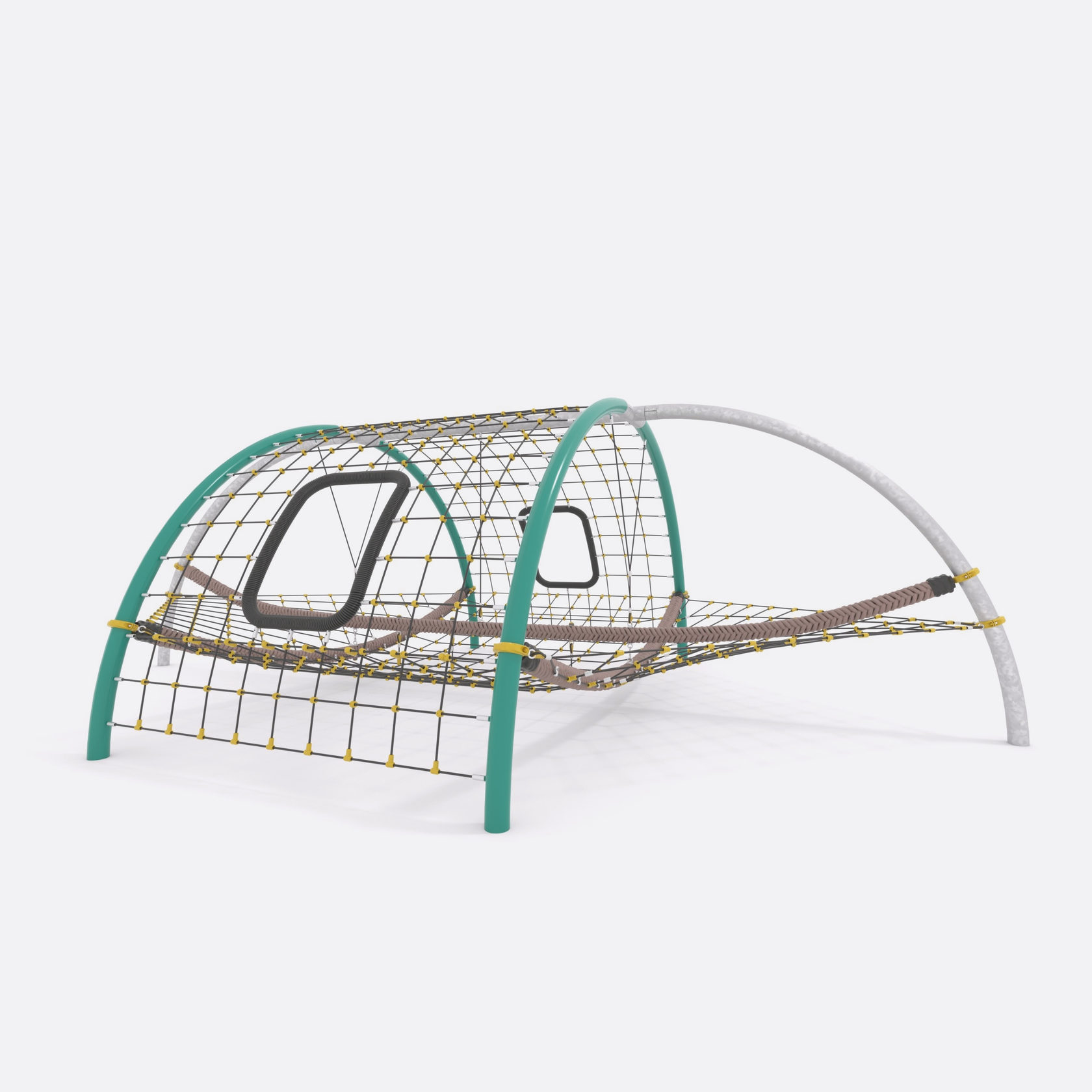 Трубы электросварные диаметром 133х4,5 мм, оцинкованные. Канат армированный шестипрядный диаметром 16 мм, состоит из полипропиленовых нитей и стальной проволоки, канат армированный четырехпрядный диаметром 150 мм, состоит из полипропиленовых нитей и стального сердечника. Х-образные и Т-образные соединения каната из полиамида ПА6. Хомуты стальные. Металлические части конструкции имеют защитное порошковое покрытие.