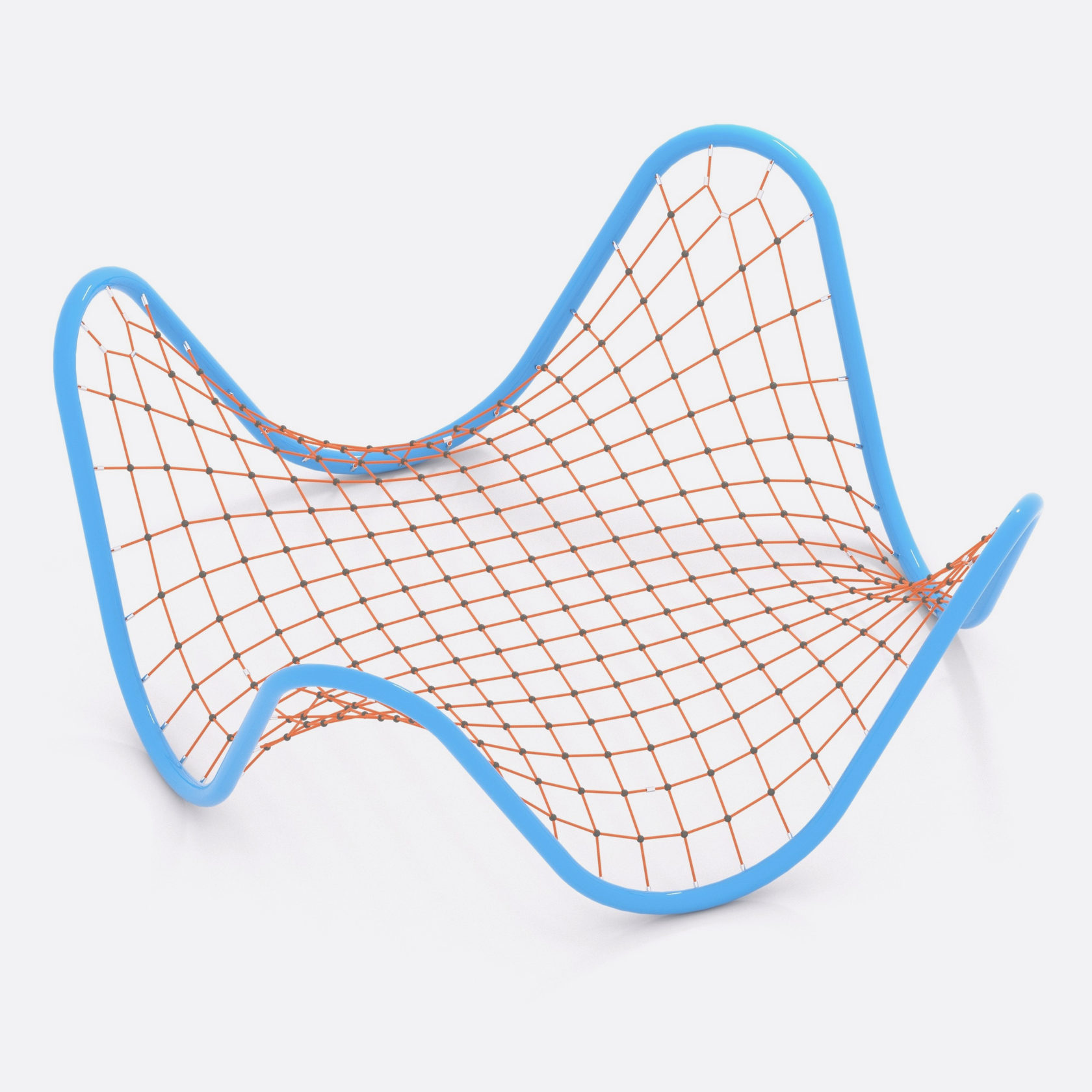 Игровая пространственная конструкция с габаритным размером 4750х4750х2000 мм, выполнена из отрезков армированного полипропиленового 6-прядного каната диаметром 16 мм, соединенных между собой в пространственную сеть при помощи алюминиевых обжимных гильз, Х-образных и Т-образных соединений из полиамида. Сетка крепится к разборной раме, выполненной из гнутых стальных труб диаметром 133 мм, при помощи специальных алюминиевых коннекторов, места стыка труб закрыты специальными стальными кожухами. Металлические части конструкции имеют защитное порошковое покрытие. Конструкция самостоящая, монтаж осуществляется на заранее подготовленные бетонные блоки при помощи анкеров.
