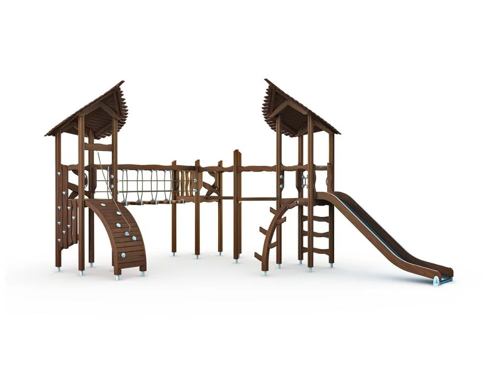 Игровая серия «Эко» разработана для гармоничного сочетания с окружающей природой. Все элементы игровых комплексов выполнены из дерева с естественной текстурой и обработаны защитным составом. Дизайн вдохновлен образами сказочных лесных построек и средневековых замков, для чего используются плавные, природные линии. Благодаря своему эстетичному виду и долговечным материалам, серия «Эко» идеально подходит для установки в парках, скверах и дворах жилых домов.