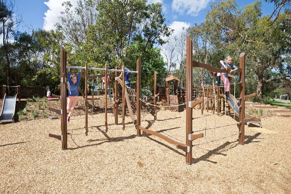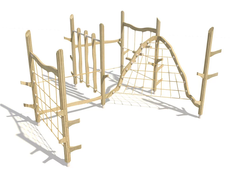 Комплекс для лазания в эко-стиле: прочное дерево и канаты для активных игр на свежем воздухе. Развивает ловкость и чувство равновесия у детей любого возраста.