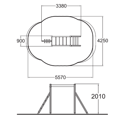 Спортивный комплекс из дерева в эко-стиле, включающий две лестницы и рукоход для разнообразных упражнений.