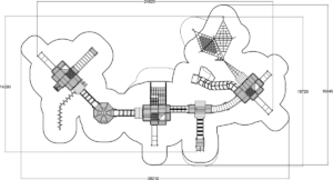 Этот масштабный игровой комплекс, выполненный в эко-стиле, воплощает собой средневековый замковый городок, состоящий из соединенных между собой деревянных башен и фортов. Конструкция, преимущественно из натурального дерева, украшена яркими зелеными акцентами на крышах и панелях. Комплекс предлагает бесконечное разнообразие игровых сценариев: здесь есть открытые и закрытые горки, мосты, сетчатые переходы и многочисленные лестницы, соединяющие все элементы воедино.
