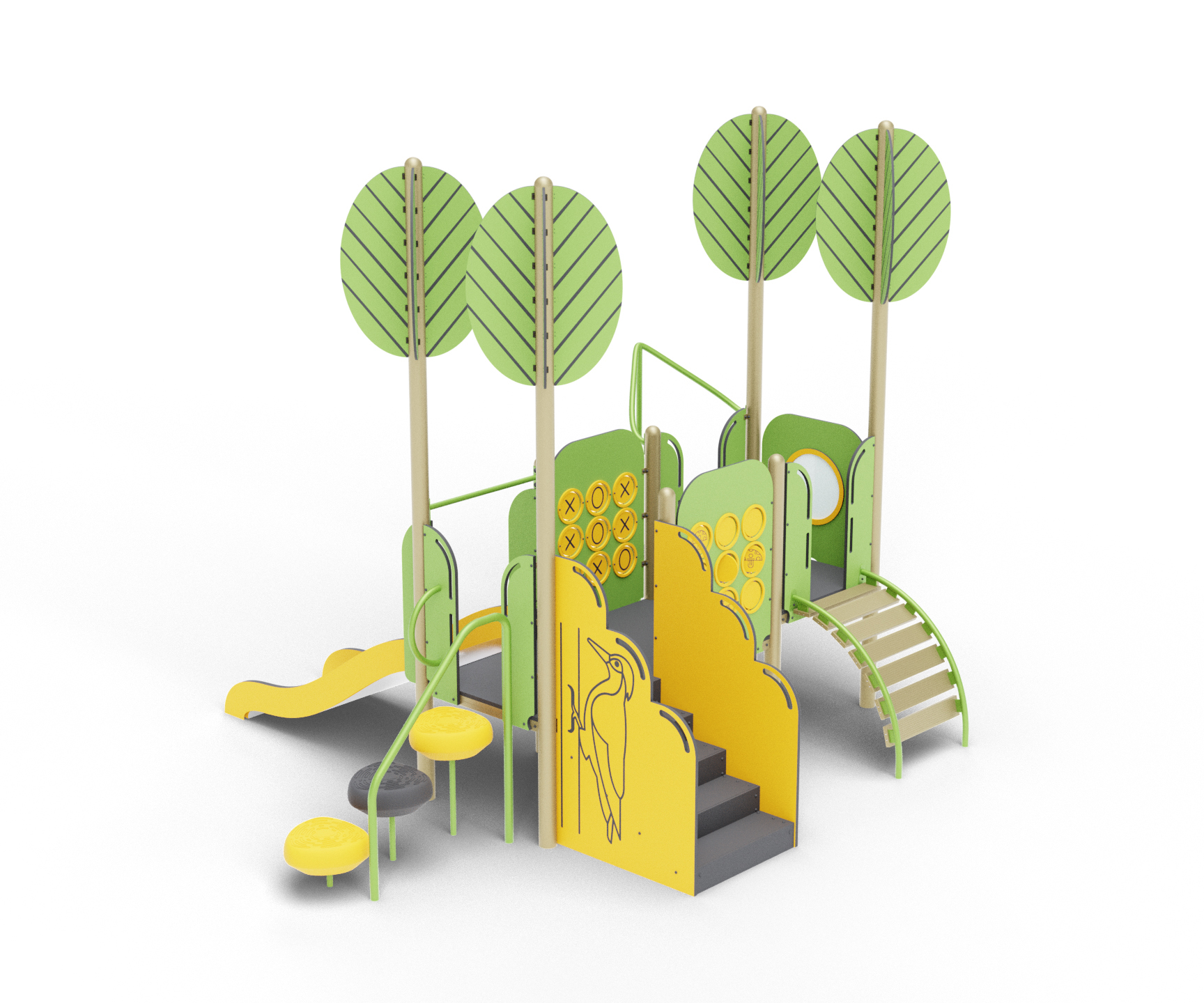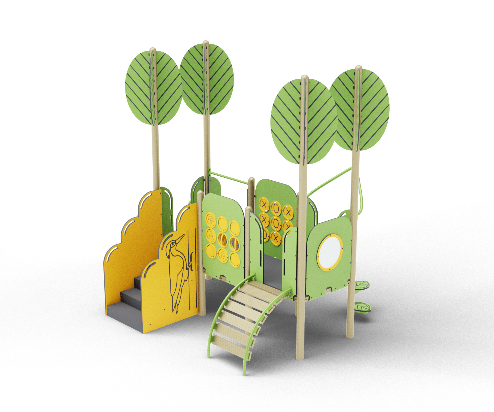 Добро пожаловать в захватывающий мир детских игр и веселья с нашим малым игровым комплексом в стиле “Лес Чудес”! Наша игровая площадка предлагает яркие и креативные развлечения для вашего малыша, погружая его в удивительный мир фантазии и веселья. Необычные подъемные элементы, игровые панели и горка непременно заинтересуют юного исследователя. Этот детский игровой комплекс станет идеальным местом для активного времяпровождения вашего ребенка, соединяя в себе элементы леса и волшебства.