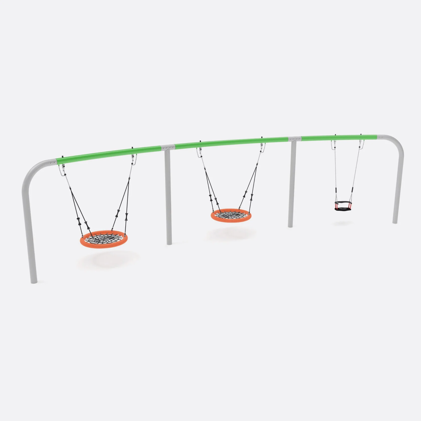 Качели Шелби для детских игровых площадок разнообразны по форме и конфигурациям. Это может быть отдельно стоящая конструкция, а может быть целый комплекс для качания.