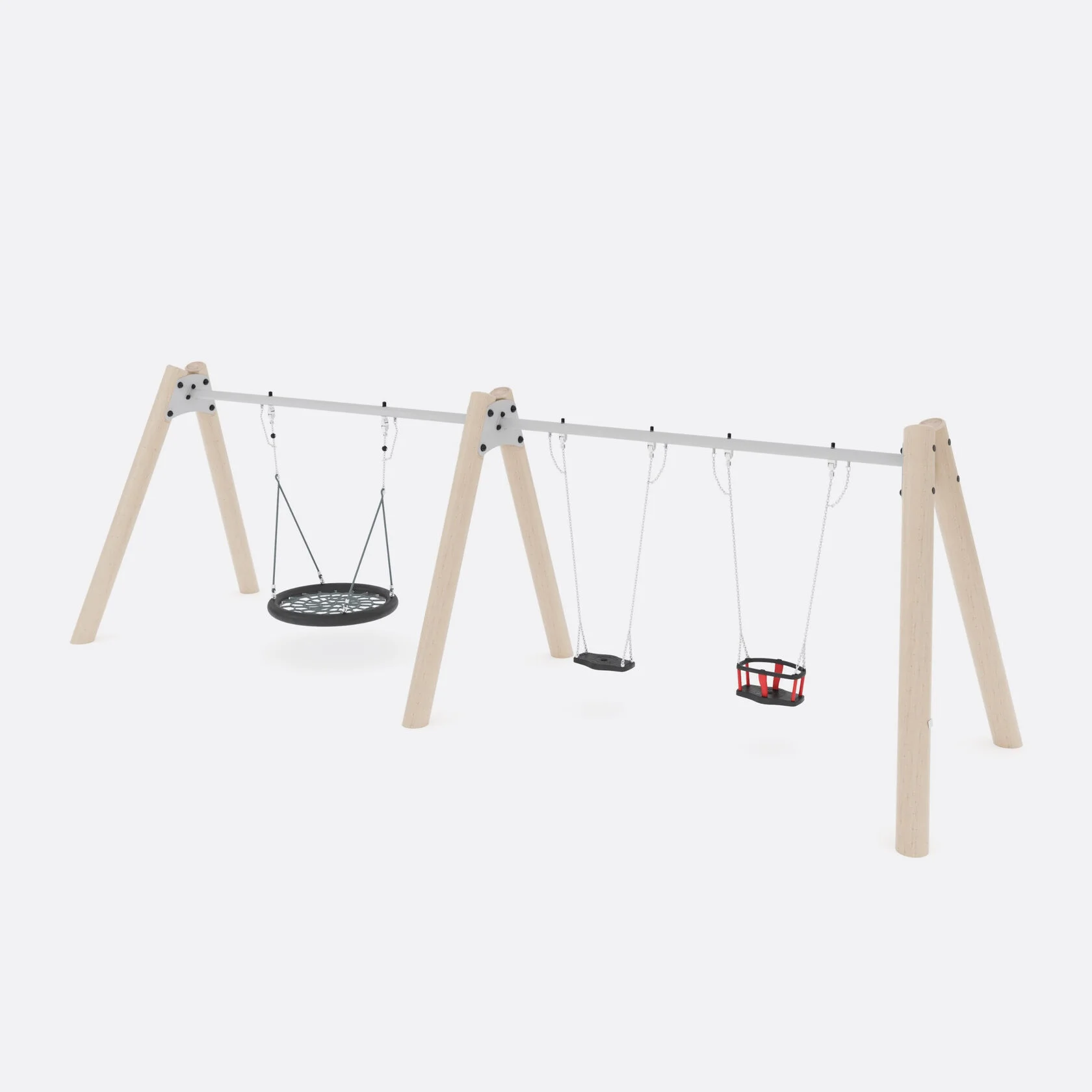 Качели Шелби для детских игровых площадок разнообразны по форме и конфигурациям. Это может быть отдельно стоящая конструкция, а может быть целый комплекс для качания.