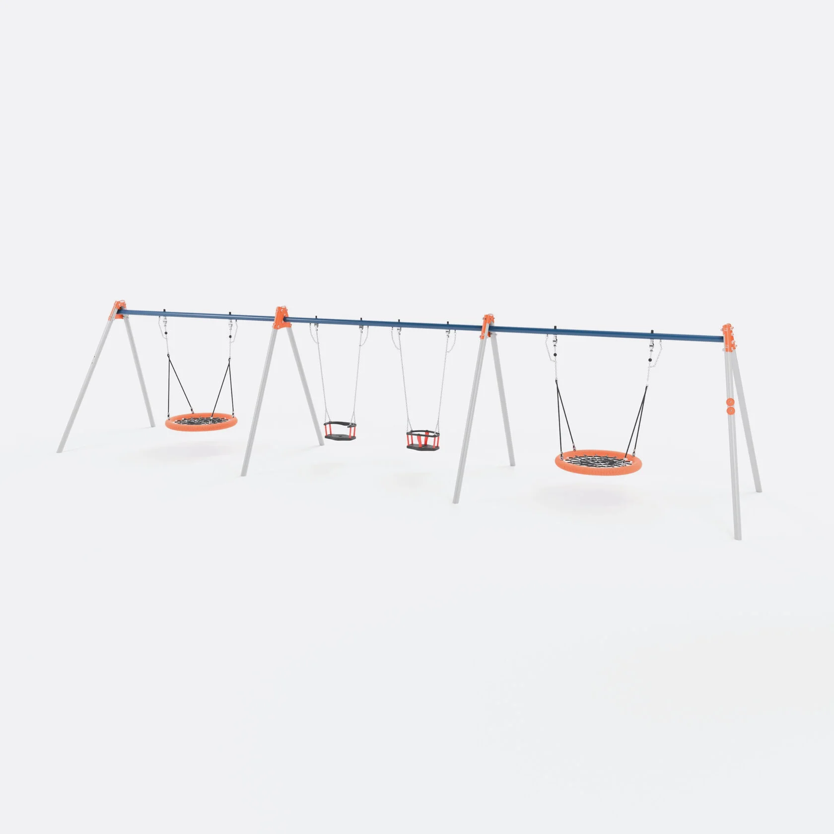 Качели Шелби для детских игровых площадок разнообразны по форме и конфигурациям. Это может быть отдельно стоящая конструкция, а может быть целый комплекс для качания.