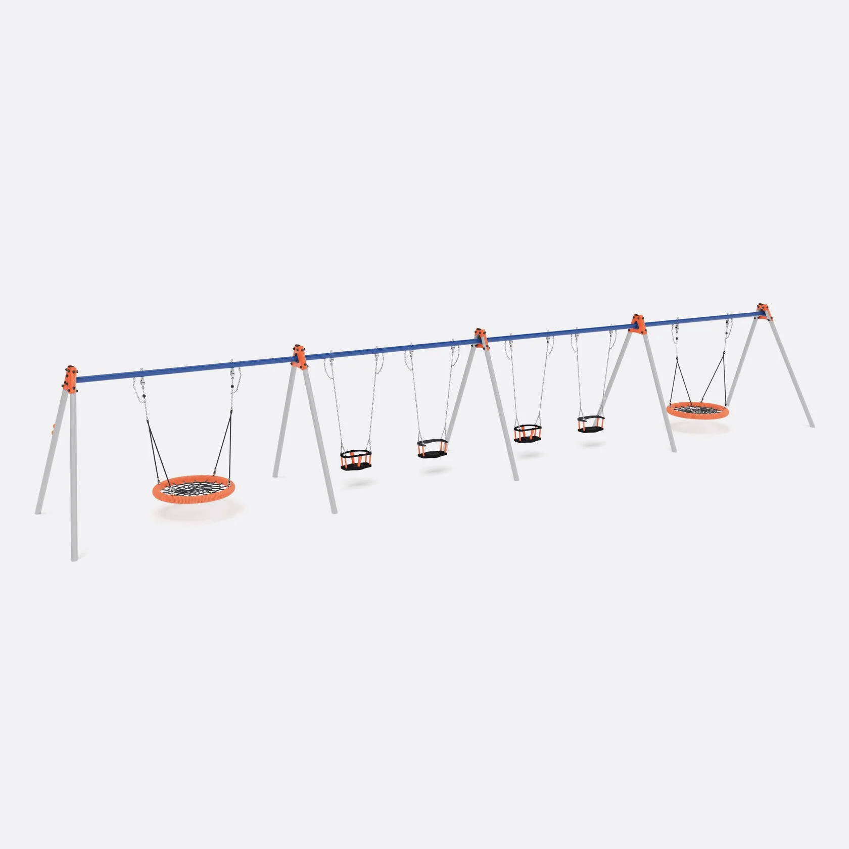 Качели Шелби для детских игровых площадок разнообразны по форме и конфигурациям. Это может быть отдельно стоящая конструкция, а может быть целый комплекс для качания.