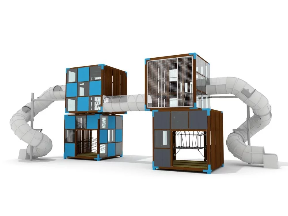 Серия «Кубики» представляет собой современные игровые комплексы, выполненные в европейском стиле с использованием экологичных материалов. Конструкции, выполненные в виде многоуровневых кубов, сочетают прочный натуральный брус лапландской сосны и прозрачный вандалоустойчивый поликарбонат, позволяющий наблюдать за играми внутри. Металлические элементы из нержавеющей или оцинкованной стали обеспечивают долговечность и устойчивость к внешним воздействиям. Благодаря компактному дизайну и минимальным требованиям к безопасности, «Кубики» идеально подходят для установки в городских дворах и парках, предлагая детям уникальные возможности для игры и развития.