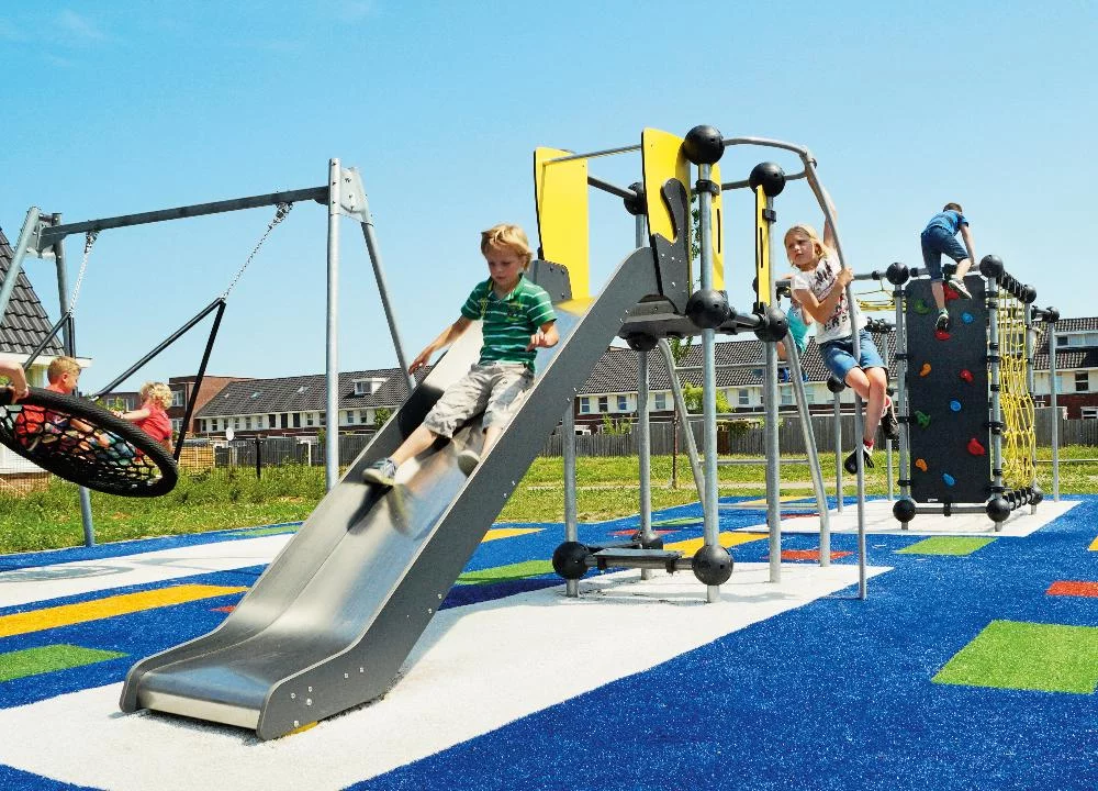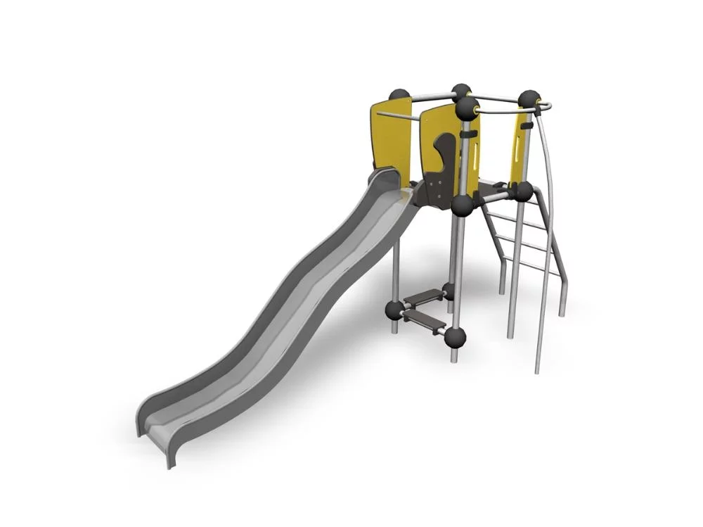 Стильные игровые и спортивные комплексы серии “Металлик» выполнены из прочной оцинкованной стали, специального вандалоустойчивого пластика и многослойных HPL-панелей, благодаря чему выдерживает многолетний повышенный износ и практически не требует обслуживания. Прочные армированные канаты с внешним покрытием из полиамида обеспечивают дополнительную безопасность и надежность конструкции. Игровые комплексы для детей 3-6 лет содержат привычные горки и качели, а спортивно-игровые элементы для лазания и паркура порадуют подростков! Дизайн серии выполнен в современном техно-стиле, который прекрасно подходит для размещения в жилых дворах и парках.