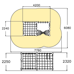 Большой спортивно-игровой комплекс, который включает в себя сеть для лазания, скалодром, подвесные кольца, извилистые канатные сети, а также рукоход. Комплекс предназначен для отработки спортивных и гимнастических упражнений.