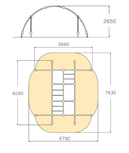 Спортивно-игровой элемент для лазания, гимнастических упражнений и паркура для детей и подростков. Состоит из четырех изогнутых опор с перемычками и горизонтальной лестницы.