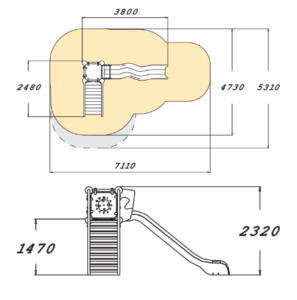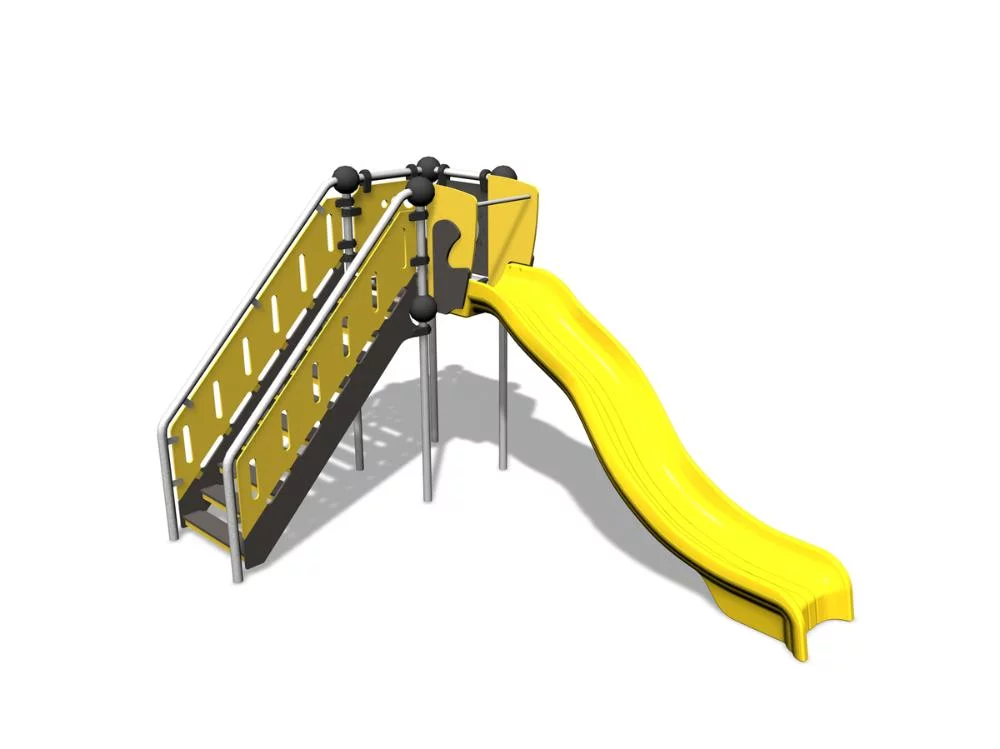 Игровой комплекс в виде длинной двускатной горки с высокой лестницей.
