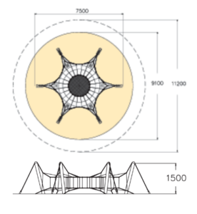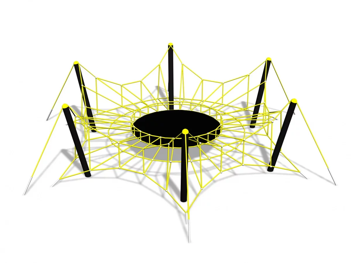 Сетчатый игровой комплекс для лазанья со встроенным батутом внутри.