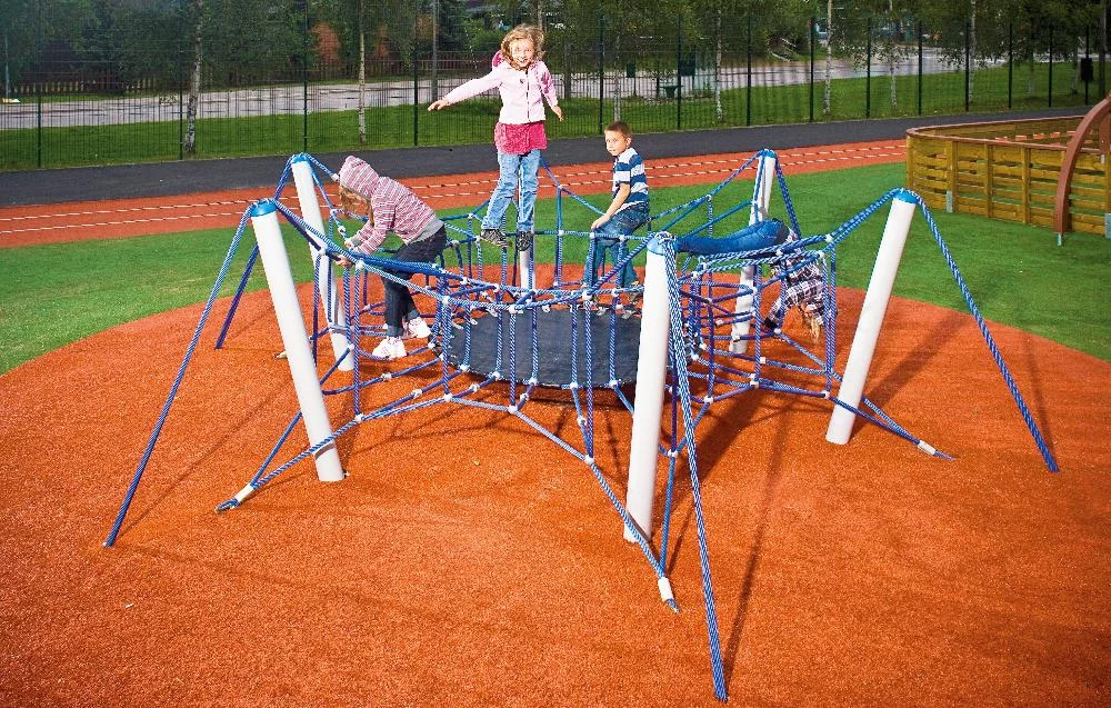 Комплекс изготовлен из высокопрочной стали и армированных канатов, переплетенных в лабиринт.