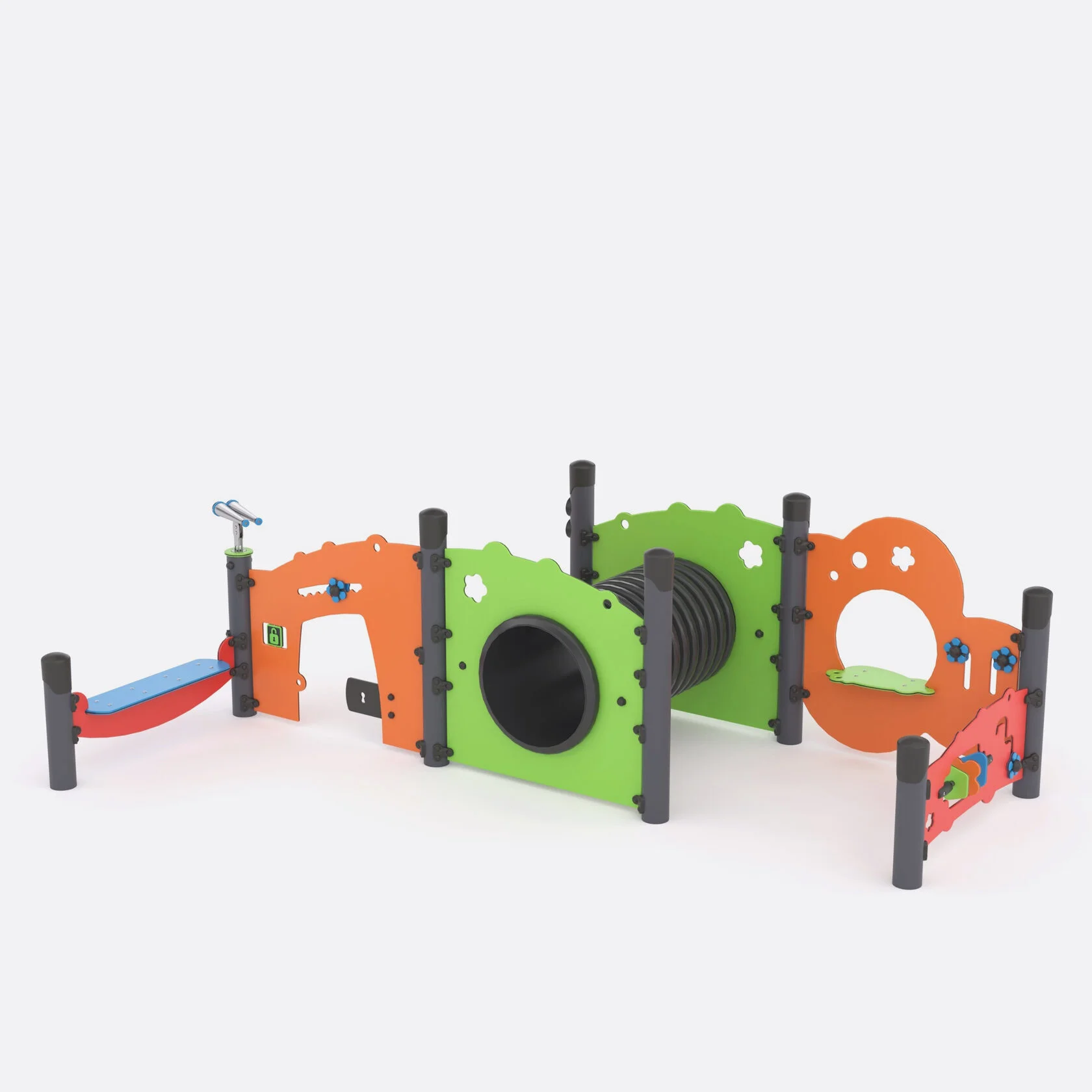Интерактивные панели и конструкции с музыкальными инструментами Shelby для установки на детских игровых площадках.