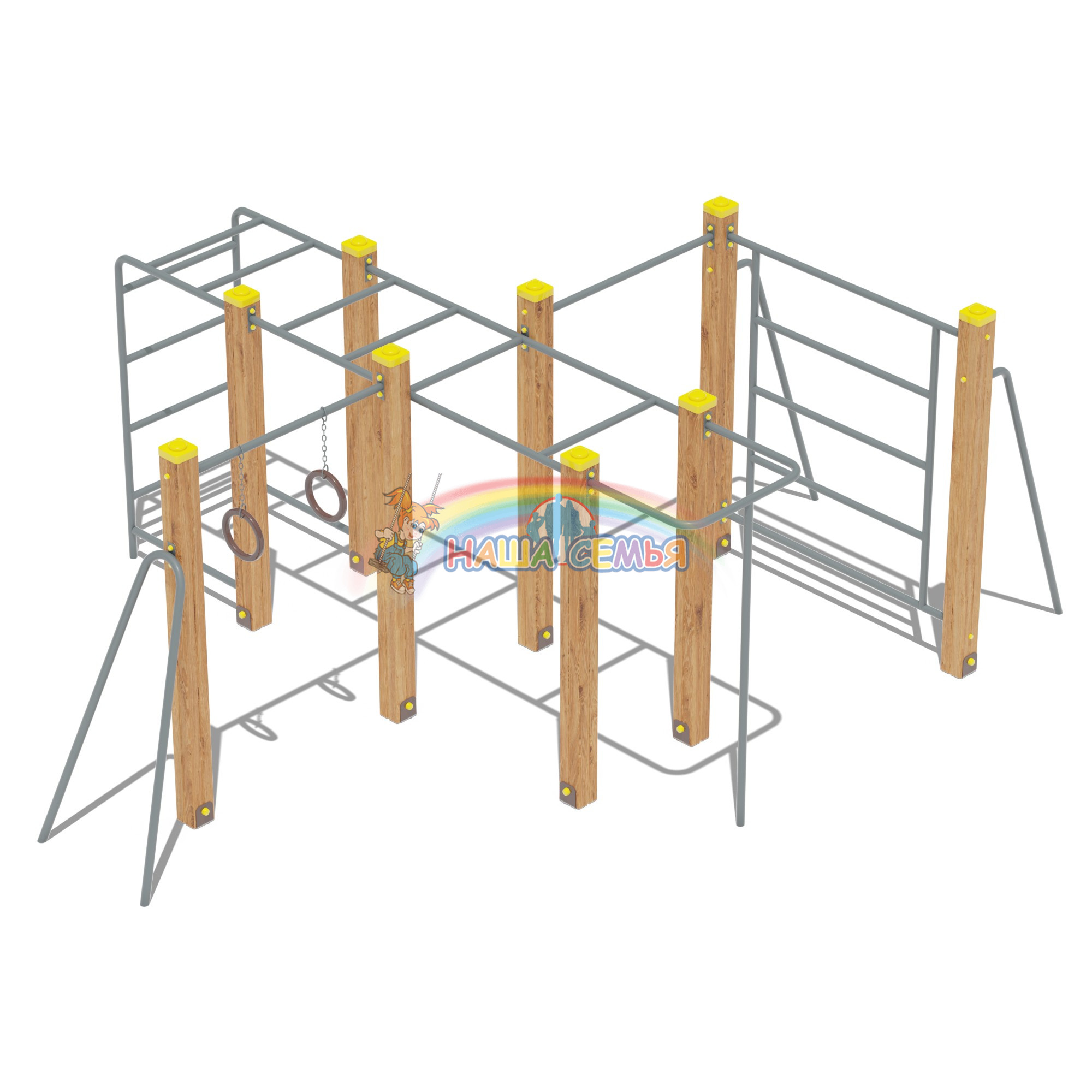Представляем вам спортивный комплекс мини Тип 2 — идеальную конструкцию для активных игр и тренировок на детской площадке! Этот комплекс выполнен в виде секций, специально предназначенных для лазания, а также оснащен снарядом — кольцами.