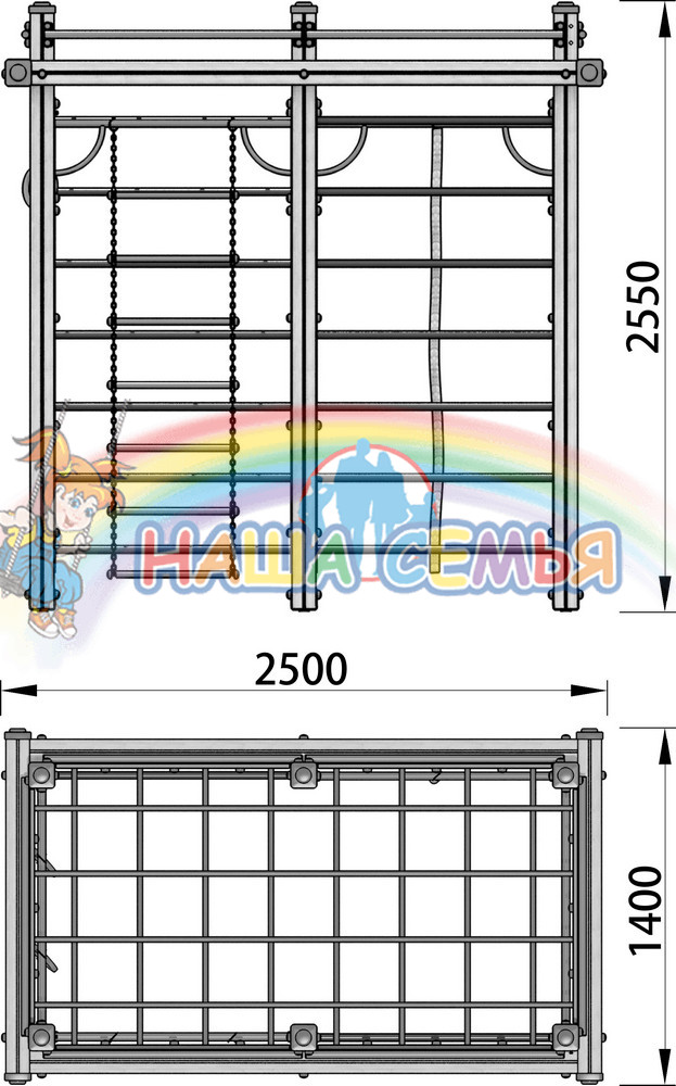 Габариты 250 × 140 × 255 см