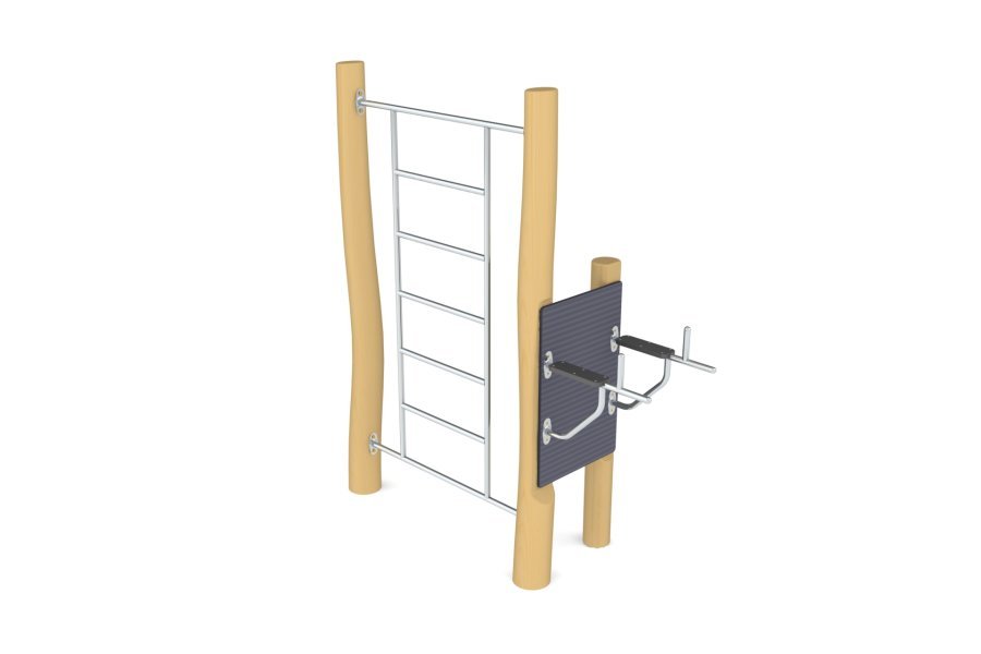 В данной категории представлено оборудование для занятия активным спортом (опорные стойки из древесины). Промежутки и стыки между элементами оборудования разработаны так, чтобы не допустить застревания конечностей, туловища и головы ребёнка, при этом конструкция не даст ему перевернуться или выпасть. Проработана возможность доступа взрослого при обстоятельствах, требующих посторонней помощи ребёнку.